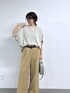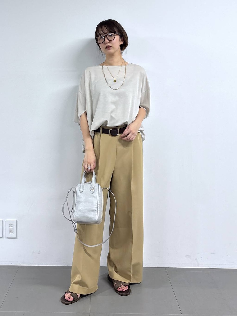 Tシャツ綺麗めコーデ ドルマンになっているので、横から見た時のゆるっとしたシルエットが素敵! シンプルコーデの時はベルトをするとかっこいいです!