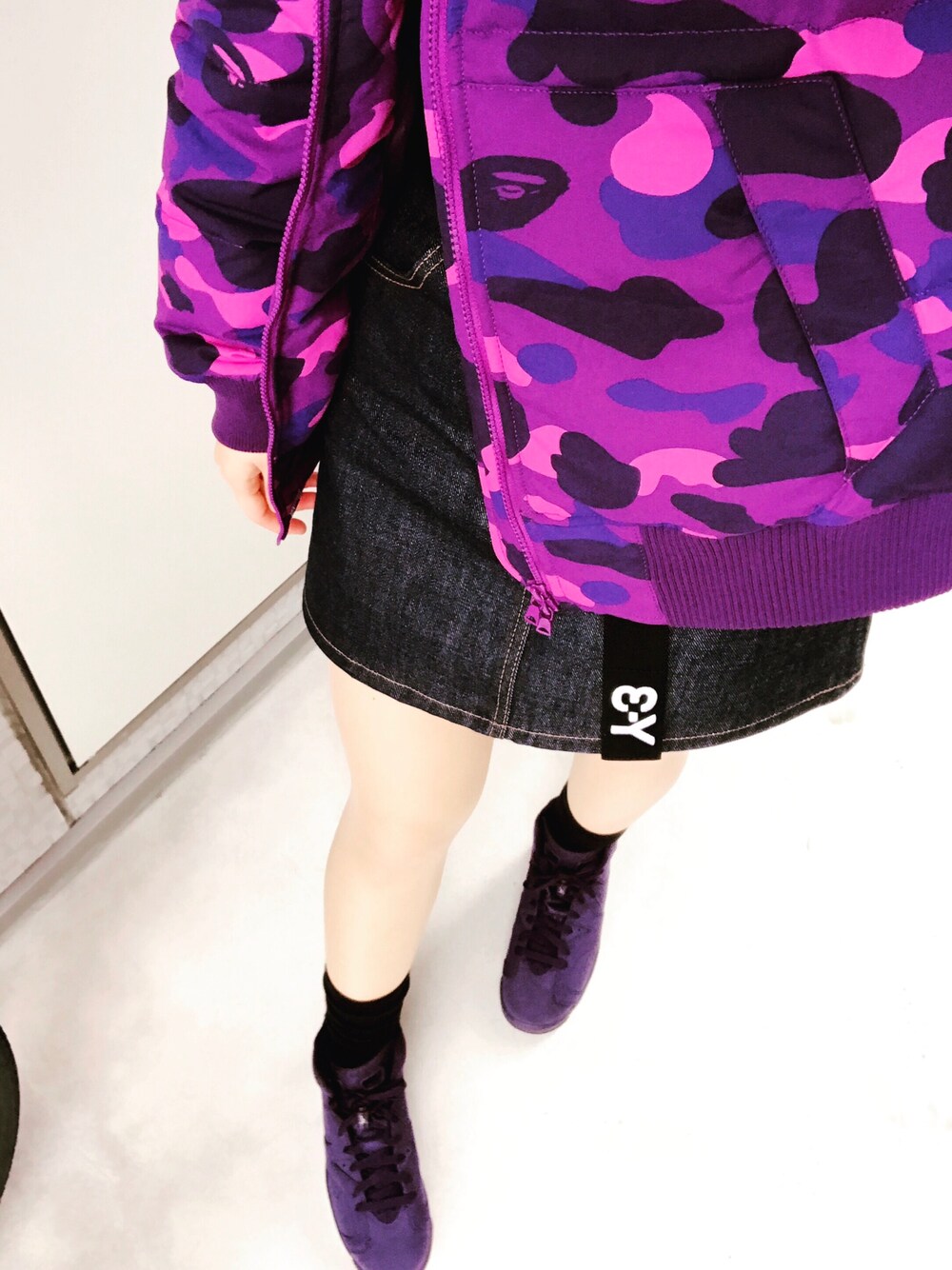 134340のダウンジャケット/コート「COLOR CAMO SHARK HOODIE DOWN JACKET」を使ったコーディネート