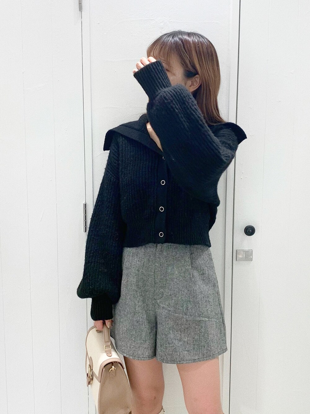 【トップス】 ゆるっとしたシルエットのセーラーカラーニット♥ トレンドの襟がかわいいです! 前がスナップボタンで着脱もしやすく 開けてカーデとしても◎ ショート丈でバランスでバランスが取りやすい! 後ろ姿もバッチリかわいいです! タートルネックを入れてカジュアルにきても◎ 【ショートパンツ】 ハイウエスト型のスタイルアップ効果抜群のショートパンツ。 ウエストゴムで履きやすいです! 短すぎない丈なので、 ミニが苦手な方も使いやすいです。 後ろリボンデザインになっててかわいい♥