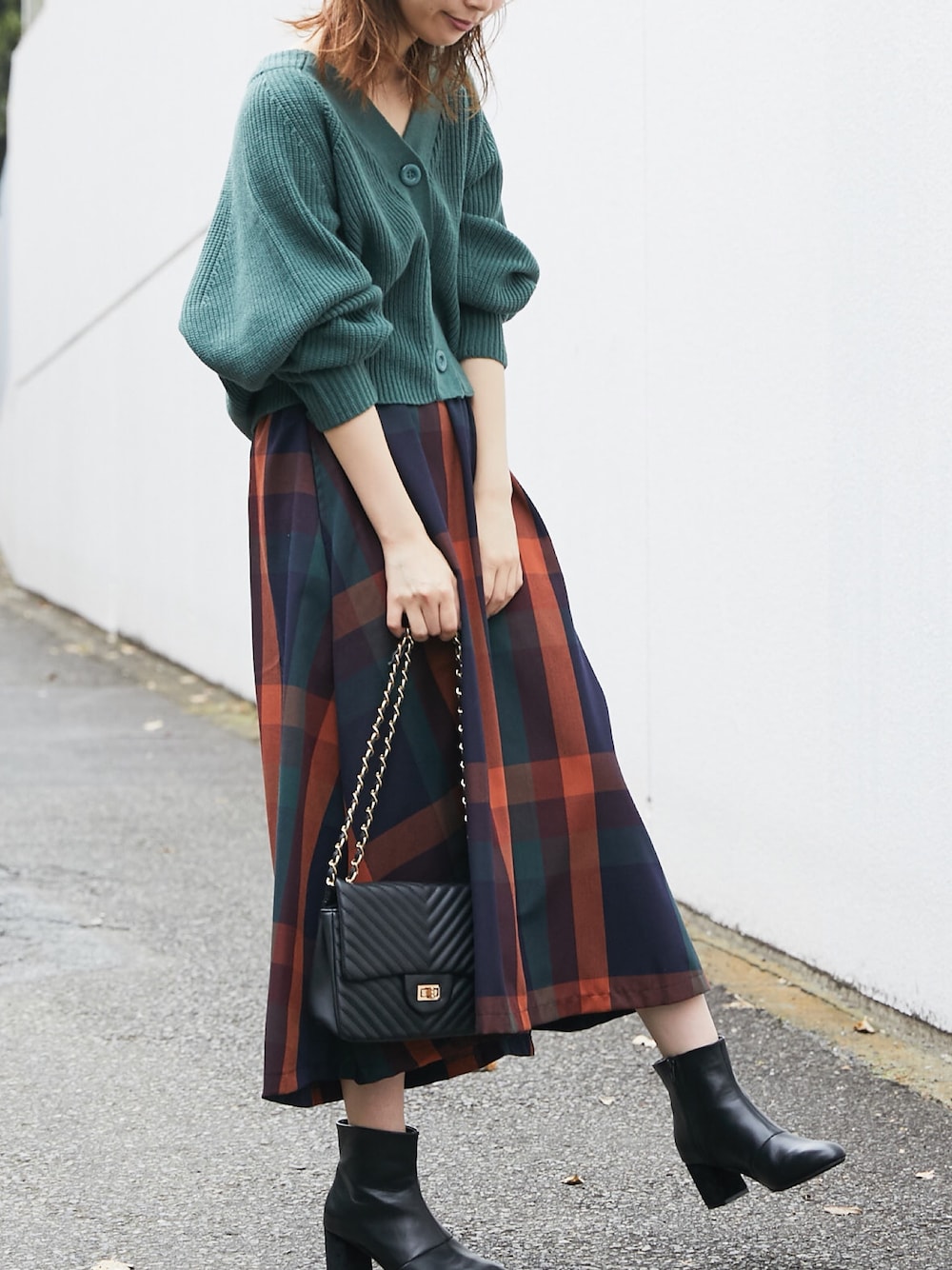 おその(natural couture)のスカート「BIGチェックフレアスカート」を使ったコーディネート