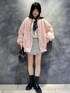 ツヤ感が可愛いピンクのMA-1に合わせて、ミニ丈で若々しいコーディネートに❤︎ 是非店頭でお試しください!☺︎︎