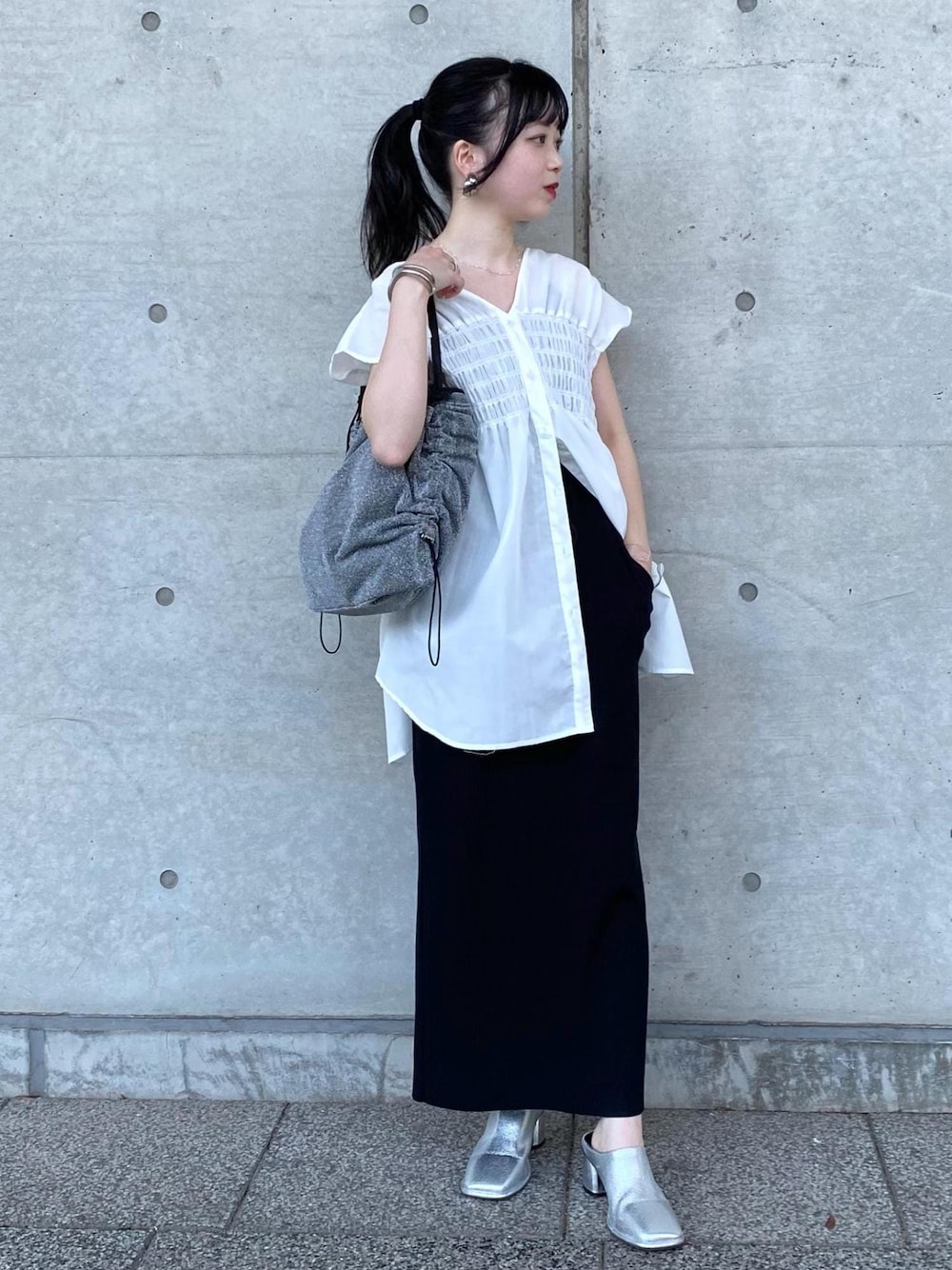 チュニック丈のシャツブラウスのウエストから下のボタンを開けて、タイトスカートのスッキリラインを活かしました✨ 低身長の方にもオススメのコーデです! 是非参考にしてみてください☺︎︎