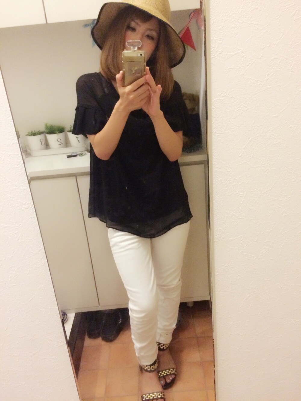 あやみんのハット「つば広リボン付キャペリンハット」を使ったコーディネート