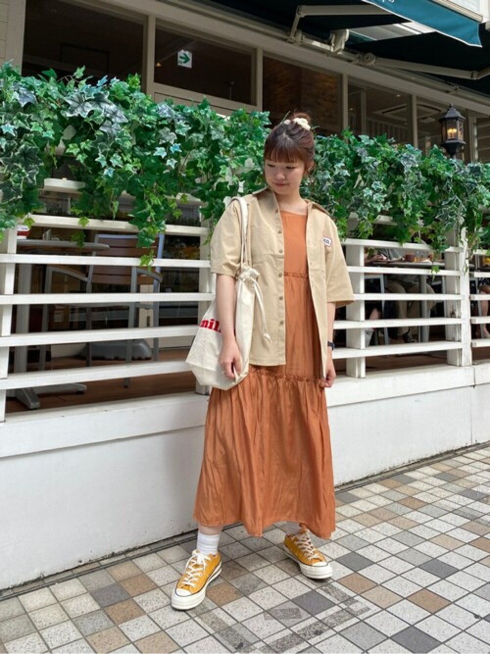 MILKFED.からメンズサイズのワークシャツが登場! ワンピースに合わせてみました♪♪ 【MENS SS WORK SHIRT】 ・ブランドロゴが大きく入ったバックプリントがアクセントになります。 ・サイズはLサイズとXLサイズなので、女の子はオーバーサイズで着られます。 ・お友達やカップルで楽しめる、ユニセックスアイテムです。