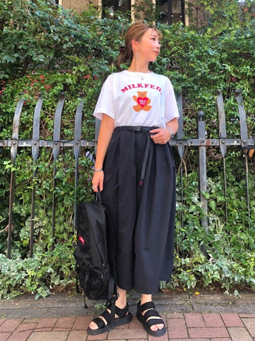 かわいいデザインのTEEはワイドパンツで大人っぽく!