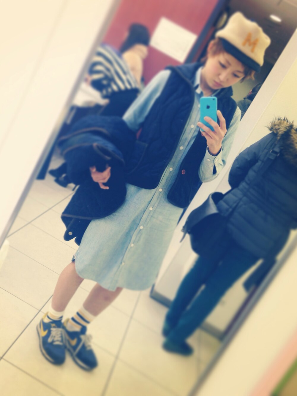 撮る暇がなくてこんなところで…(._.) お気に入りのナイキスニーカーに靴下はチュチュアンナ☻ 動きやすいのが1番だけど、まだ生足はつらいっw