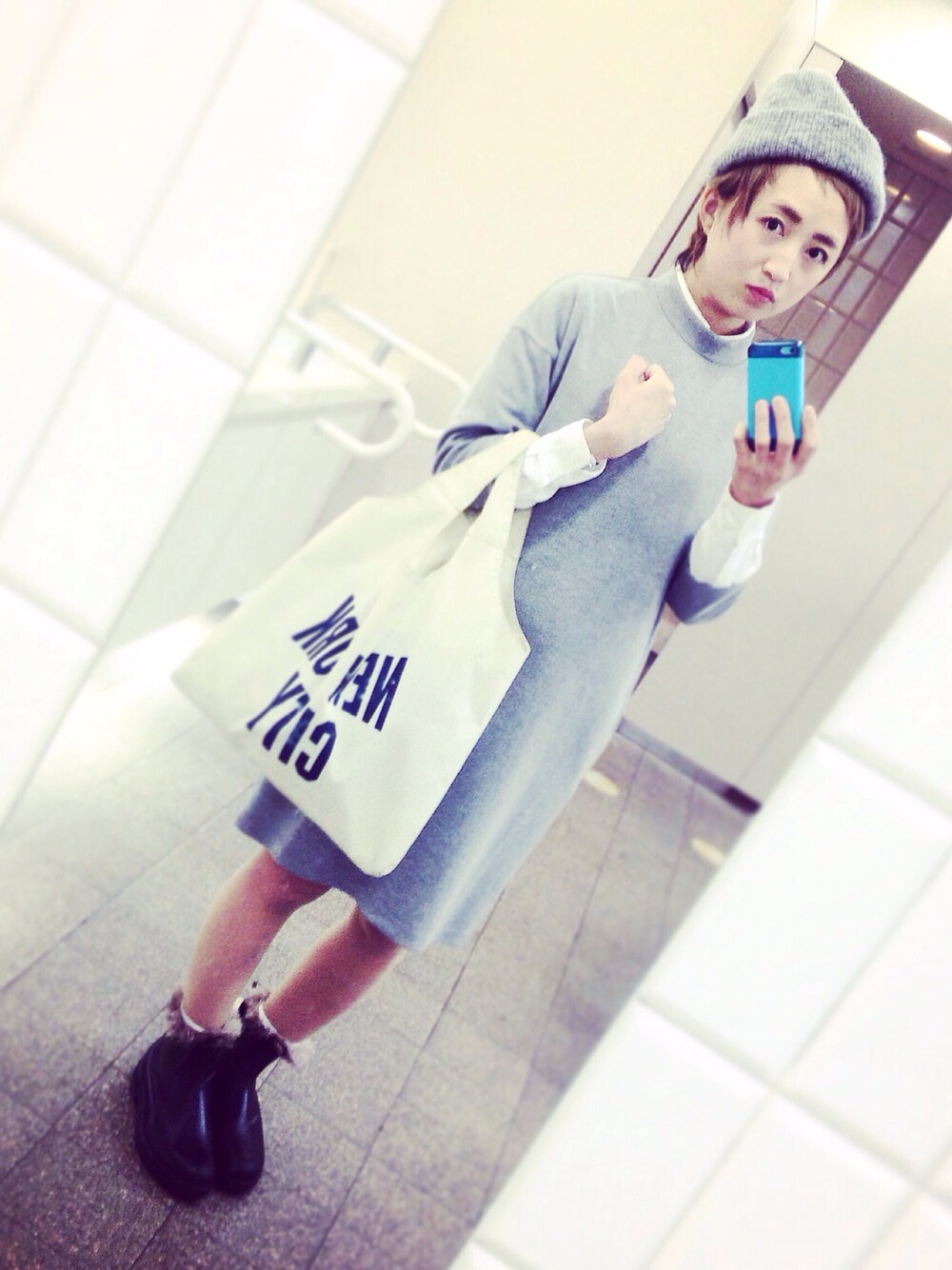 ayamiiiiのニットキャップ/ビーニー「CA4LA ニットキャップ グレー」を使ったコーディネート