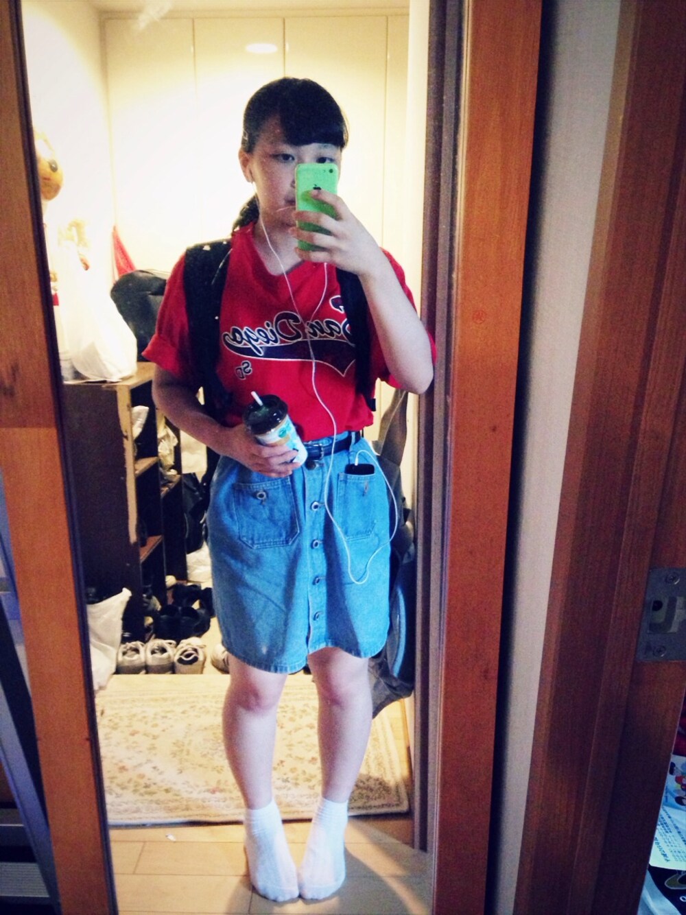 今日はアメリカで買ったTシャツを着ました〜😙💓👍 大きめなのでゆるく着れます🎶 デニムのタイトスカートは古着です! アメリカンなスタイルに仕上げました🌼✨