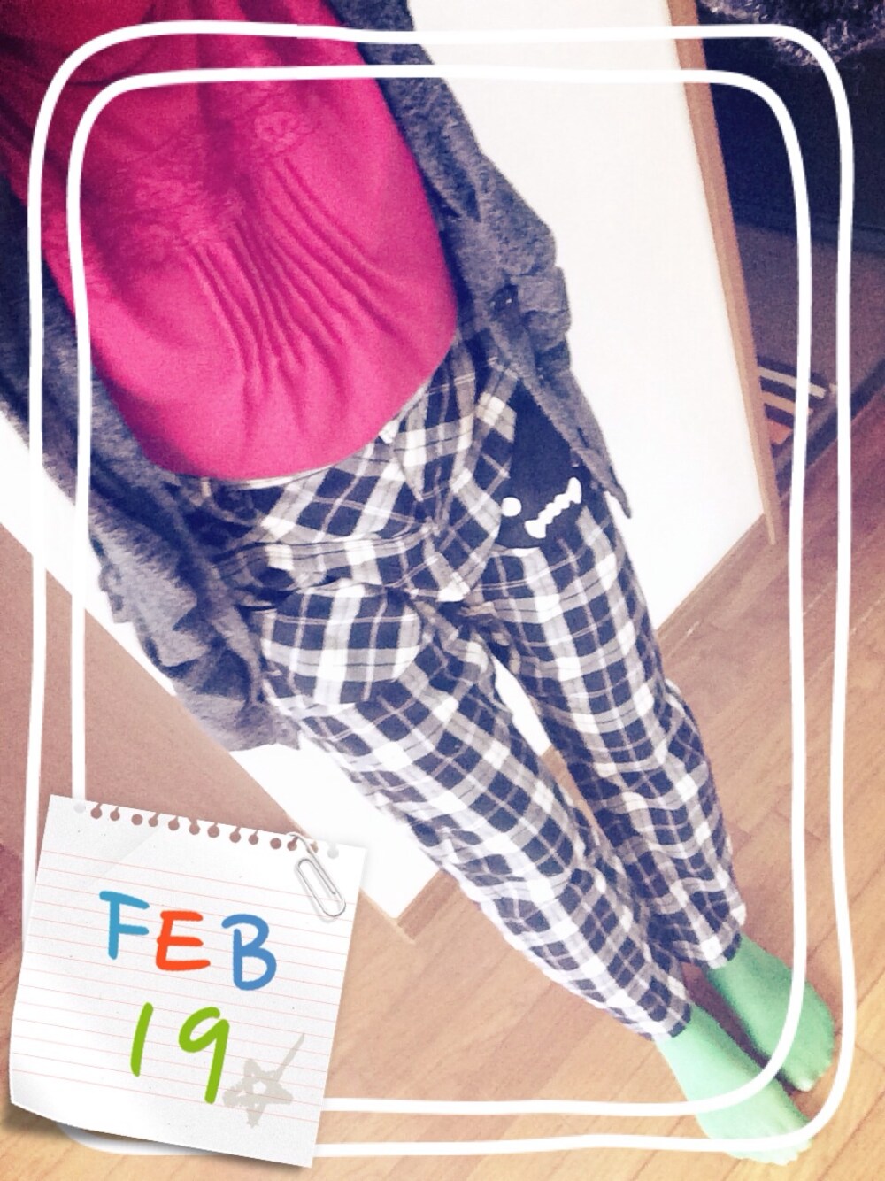 お店で発見して一目惚れしたチェック柄のパンツ♡ 見えてないですが、後ろのお尻の部分にもコビニャー(ネコ)の顔の形をした布が塗ってあります♪