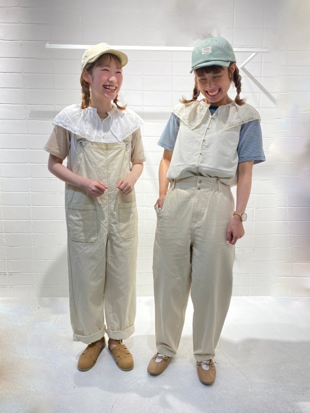 . . . 繊細なレースが可愛いブラウスと、 すっきりとした細めのボーダーの 組み合わせで、折田さん🐥(@oyic)と 双子コーデしてみました👭💞 . .