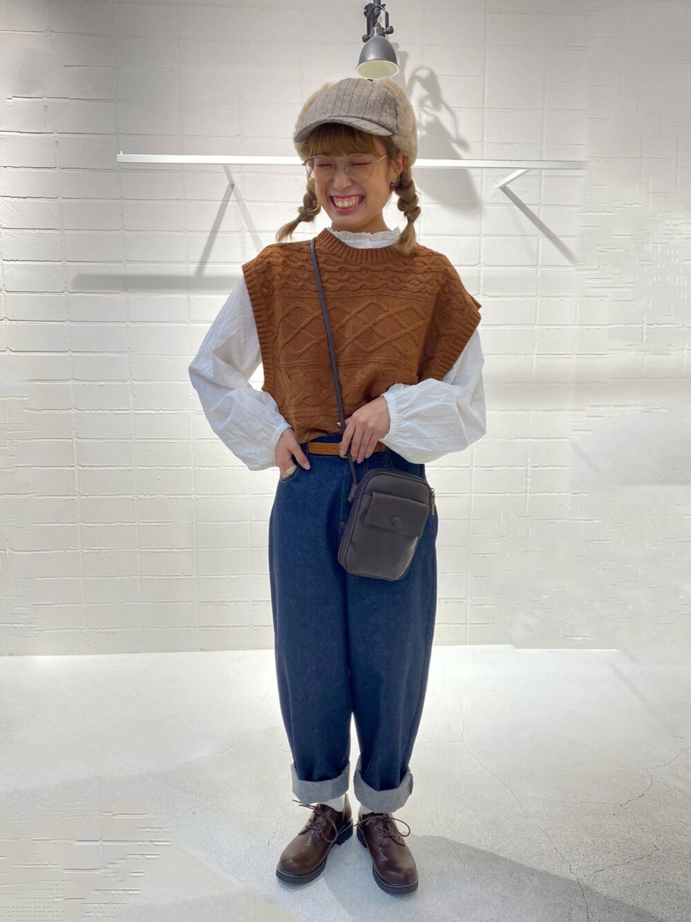 . . . 海外のレトロをモチーフにした カジュアルコーディネート👑 シンプルだけど、ケーブルクルーベストのデザインが より目立って可愛いです🤗💗 . .