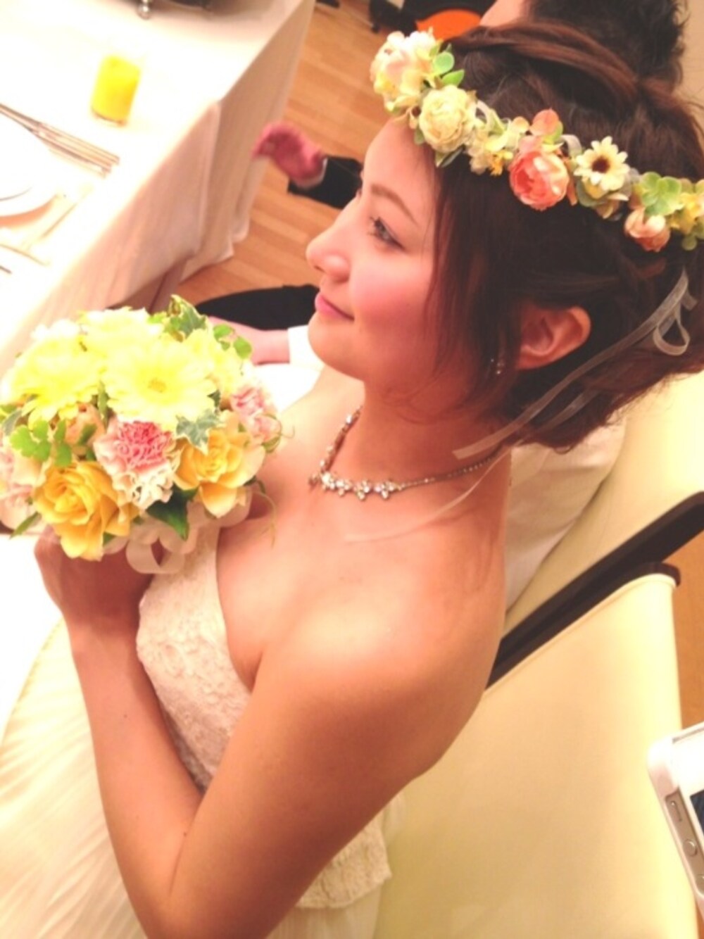 1年ちょい前の結婚式で花冠をつけました(^O^) 春だったし、パステルカラーで暖かいかんじで作ってもらいました〜 ウエディングドレスもかなりお気に入りで、トップス部分はレース調になっていて、スカート部分はシフォン素材で細かいプリーツが入ってて。シンプルだけどとっても綺麗なのです。 産後痩せした今ならもっと綺麗に着こなせるのに。← もう一枚の写真は実家のわんこです。 挙式にてリングドッグという大役を果たされました。笑 披露宴中も放し飼いOKという寛大な式場でした! 懐かしいー( ̄▽ ̄) 花冠はあえて造花にしてもらったので、今は部屋に飾ってます^ ^