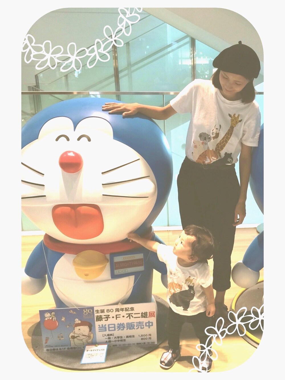 親子おそろいコーデ。 いってきました、藤子・F・不二雄展! 黒のベレー帽は、一応、不二雄氏を意識したのだよ。笑 てか、この動物Tシャツほんとかわいい! 店員さんいわく、動物たちがチューチュートレインの冒頭踊ってるとこらしい。 なに?かわいすぎやん。 しかも、バックプリントには踊り疲れてバタンキューしてる動物が描かれてて、これまたかわいすぎやん。 パパもお揃い持ってるねんけど、この日は仕事だったので不在。 3人揃って早く着たいねー(^O^)