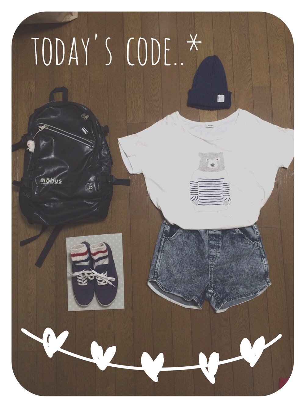 リュック:mobus くまTシャツ、 1歳の息子がしょっちゅう「乳出せー乳くれー」といわんばかりに首元引っ張ったり伸ばしたりするので、よれよれ〜。 来年は着れなさそうやーT_T 気に入ってたのでショック大。笑