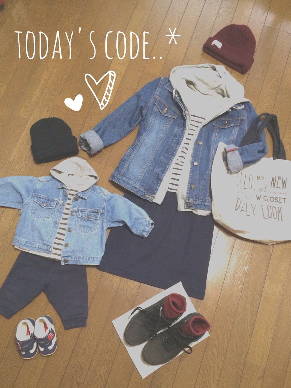 パーカー:UNIQLO Gジャン:THE EMPORIUM トップス:LOWRYS FARM お揃いじゃv(^_^v)♪ 息子とお揃いじゃ♪(v^_^)v いつまでお揃い着てくれるかわからんので、物心つかない今のうちに。笑