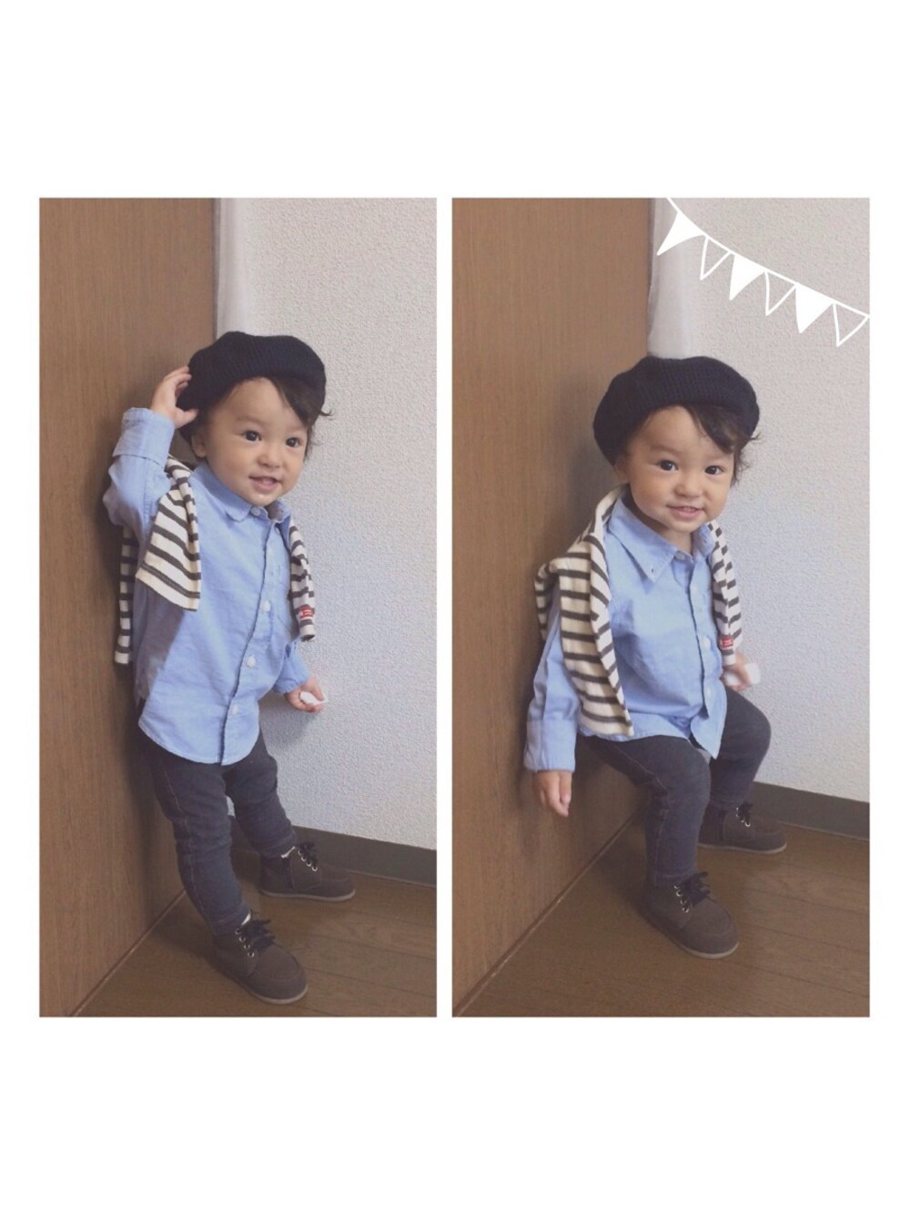 デニム風シャツ:babygap ボーダートップス:マーキーズ デニム風パンツ:ユニクロ トップスもボトムスも、デニムではなく、デニム風! デニム!もどき!! ていうか、 髪の毛暴れ倒してるから切ってあげたいけど、前回、前髪切りすぎて邦正みたいになっちゃってんなー。笑 いや、でも前髪目に入って痛い思いするくらいなら、邦正になるほうが良いよね…! うん、切る!切るぞ! 息子よごめん!先に謝っておく!