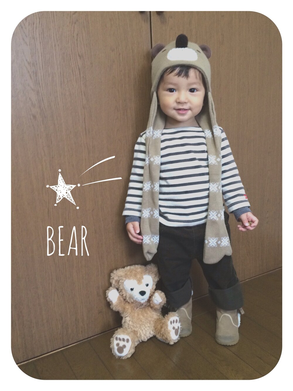 トップス:マーキーズ パンツ:無印良品 くま帽子は、去年のXmasにパパが仕事帰りに買ってきてくれたもの。笑 朝に枕元に置いておくなんてサンタ的なお洒落なことはできないパパです。笑