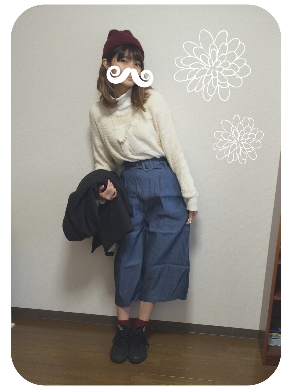 ZOZOのセールで購入したNomineのパンツ\(^o^)/ おろしたてなのでシワが…\(^o^)/ 小物をボルドー色で合わせました!