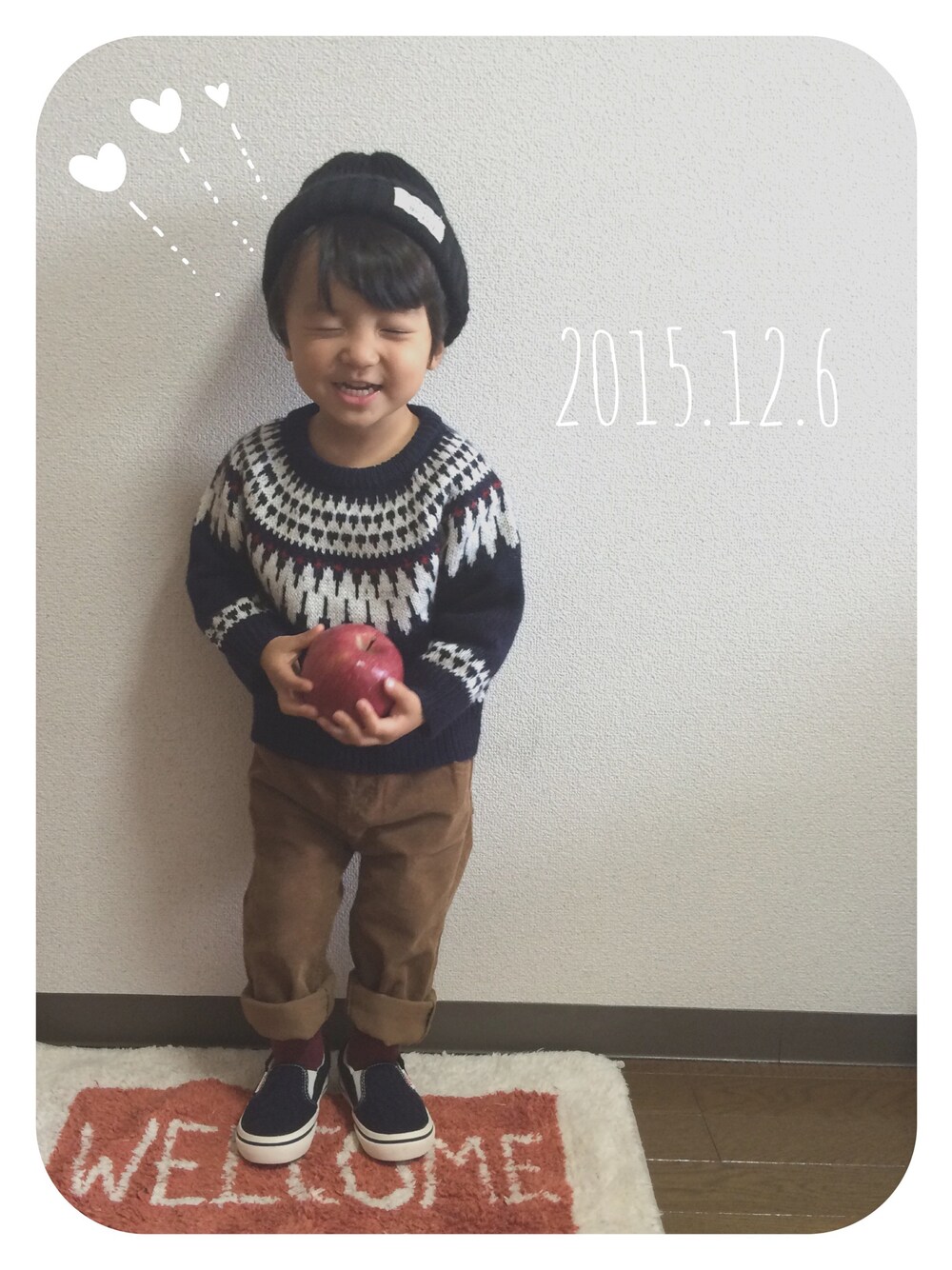 洗濯物干してたらお隣さんがベランダ越しにりんごくれたよー! りんご大好き息子大喜びの図。笑