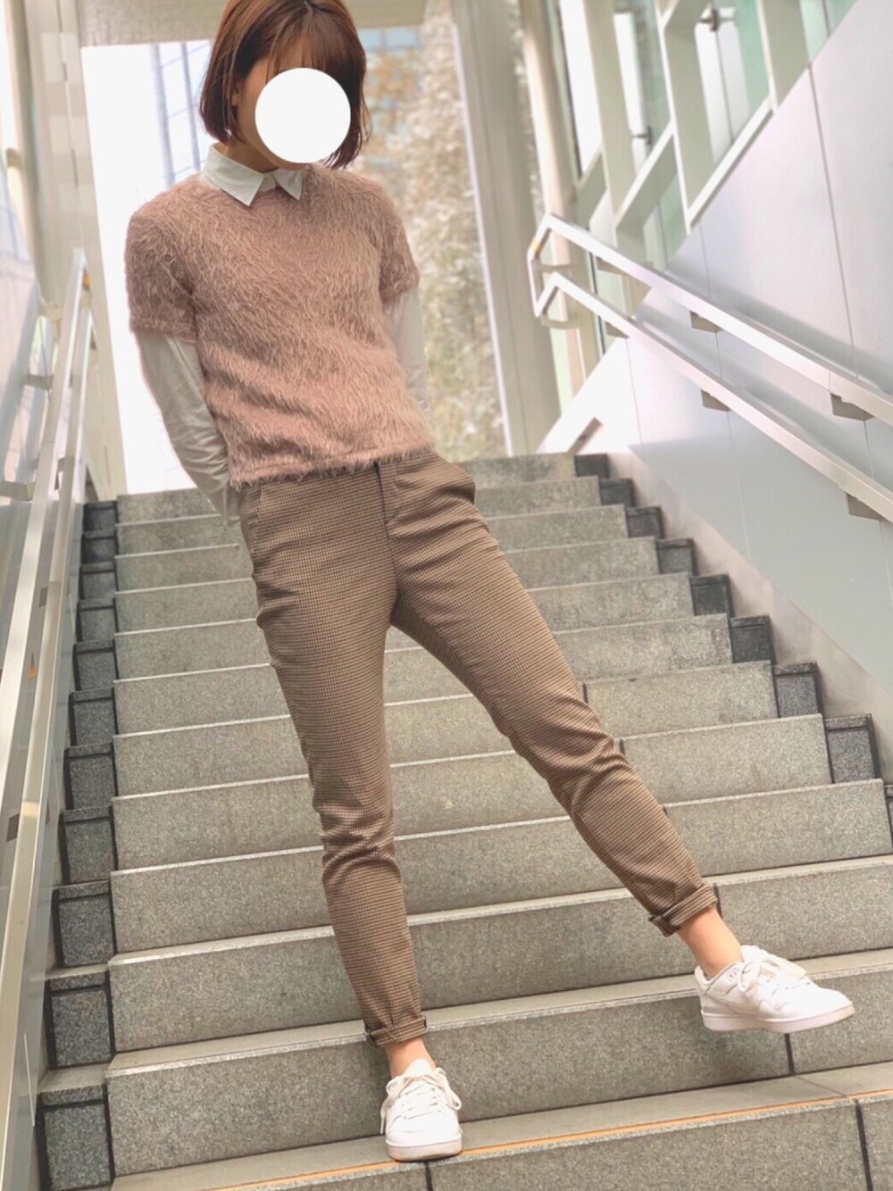 半袖のシャギーニットって珍しいですよね。一目惚れして即購入しました! 寒いので中にシャツを着ました 全体的に淡い感じの色でまとめました