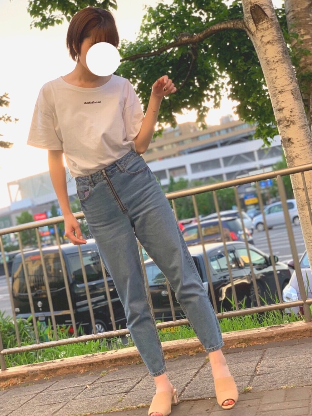 ど定番のデニムパンツ×白T👀 やっぱりかわいい! 服を決めるのがめんどくさい時はこれで決まりですね👍