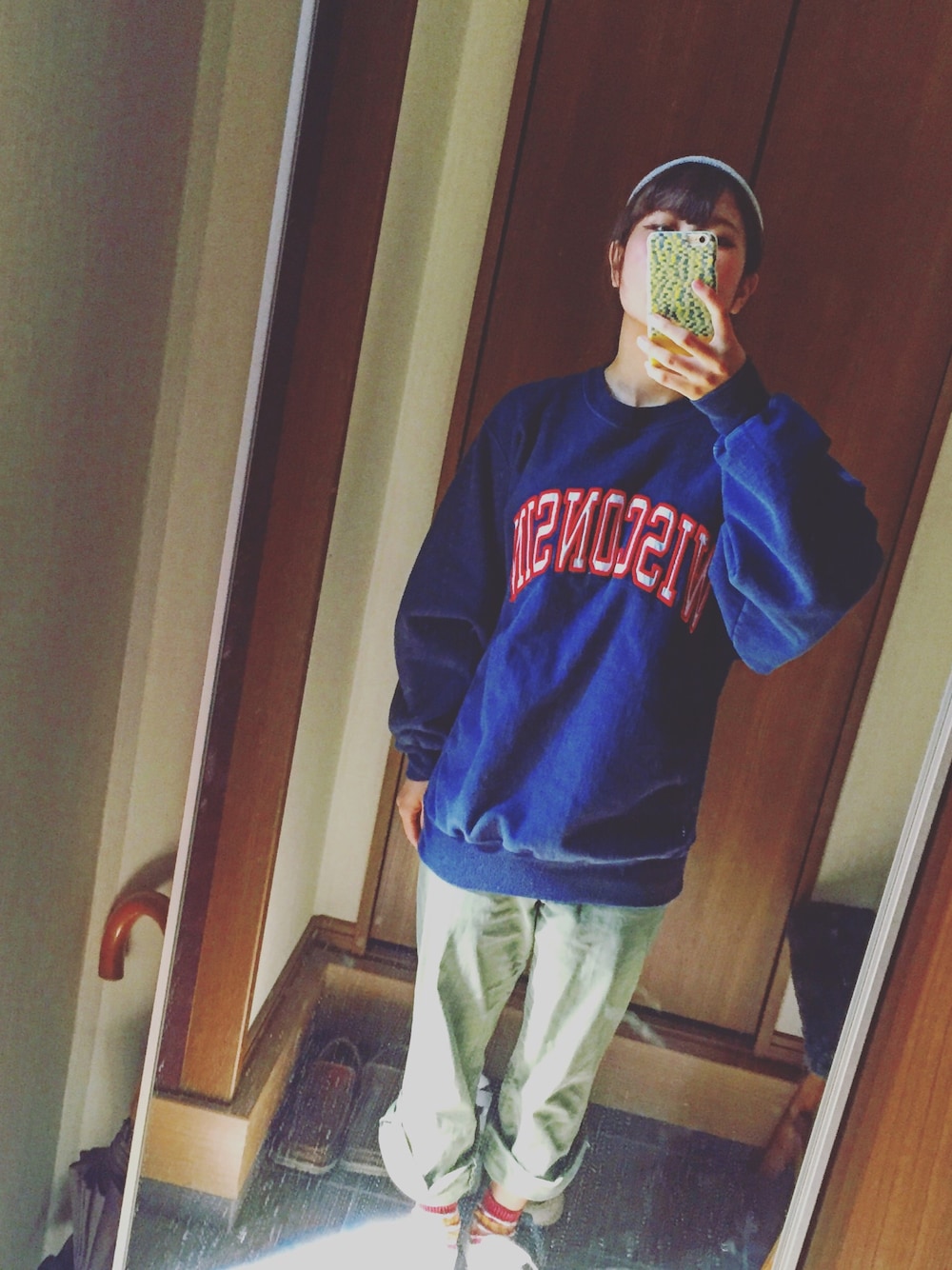 大阪の古着屋さんで買ったやつです パンツは母のものなのでどこで買ったかどこのブランドかわからない!!💦