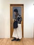 スカートのリボンがめちゃくちゃかわいい!軽くて履きやすさ、動きやすさ◎!ガーリーすぎるのが得意じゃないので、甘くなりすぎないようにお色はモノトーンで。このカーデもシルエットが綺麗で生地しっかり!体型カバーもできちゃいますっっっ