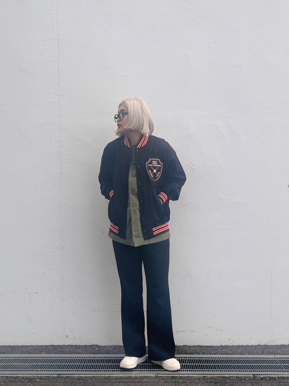 ayanaのスタジャン「【直営店限定】LIGHT STADIUM JACKET / ライト スタジアム ジャケット / AVIREX / アヴィレックス」を使ったコーディネート