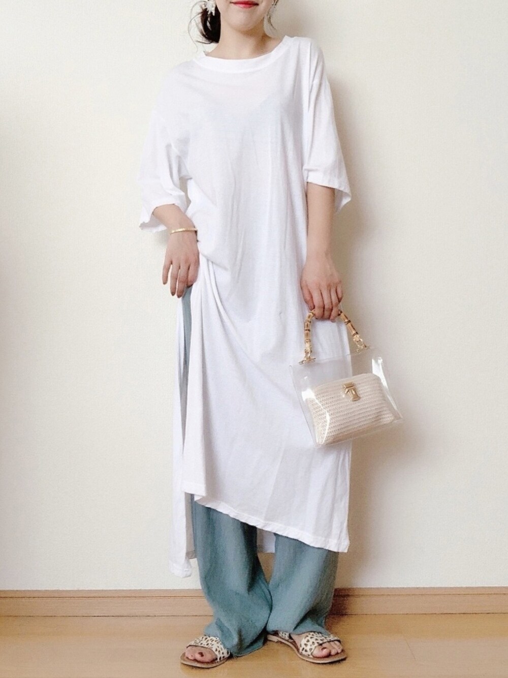 見てくださりありがとうございます☺︎♡ ゆるっと楽ちんスタイルです🌼 髪型はスッキリアップにして 大ぶりのピアスを付けるのがお気に入り❣️