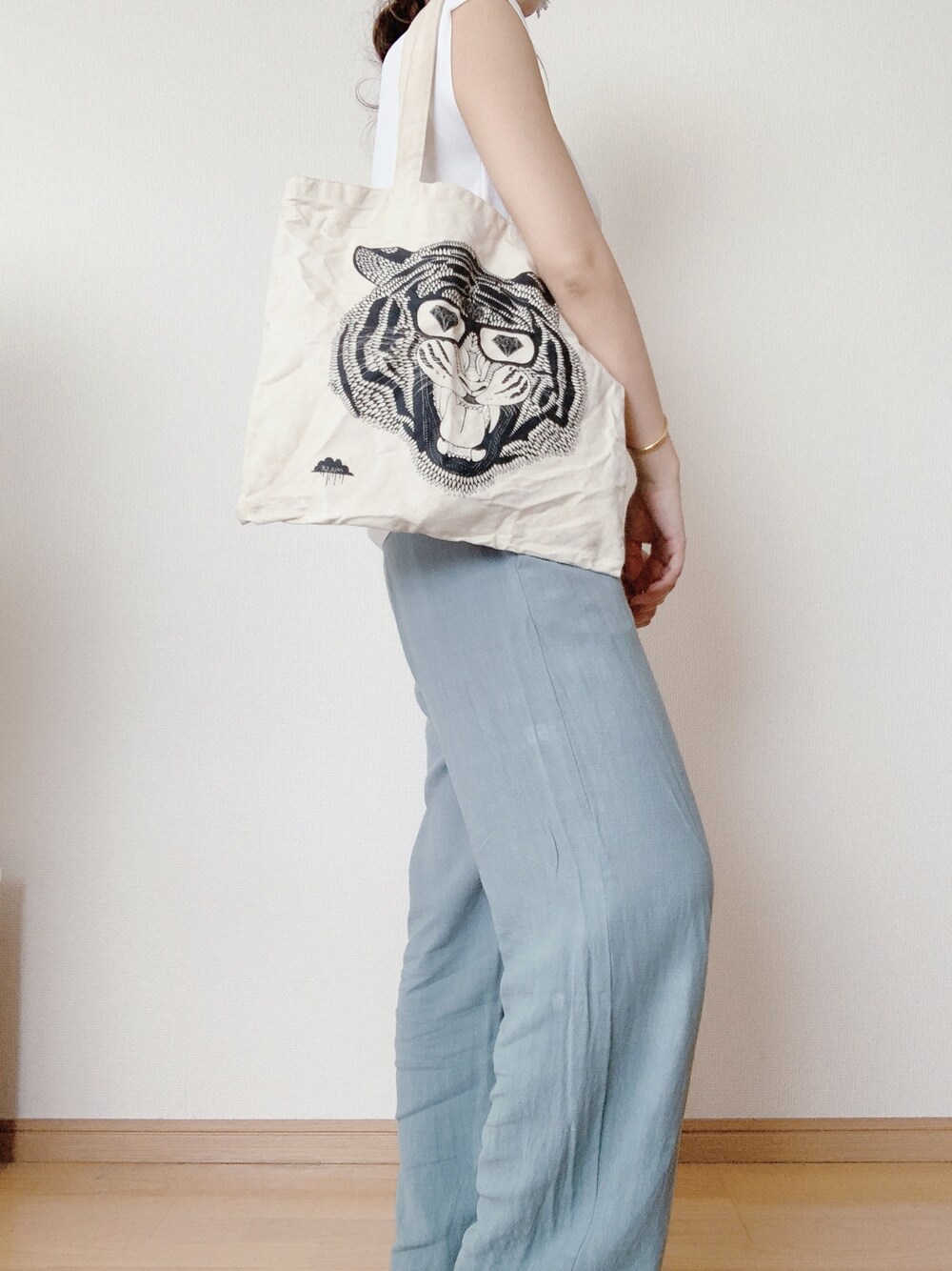 見てくださり、ありがとうございます☺︎♡ ゆったり楽ちんコーデ🌼 上下シンプルなので 派手なトートバッグでアクセント🐯