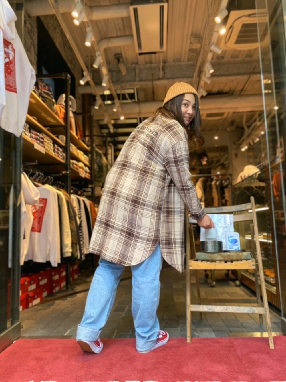 AYNのシャツワンピース「チェックシャツワンピース ハリケーンハンタース/ CHECK SHIRT ONEPIECE HURRICAINE HUNTERS」を使ったコーディネート