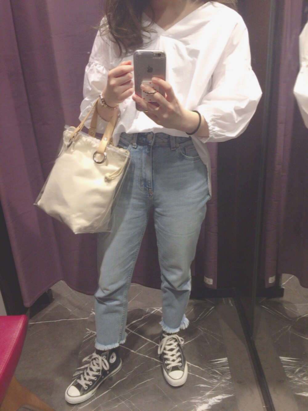 yomicoのデニムパンツを使ったコーディネート