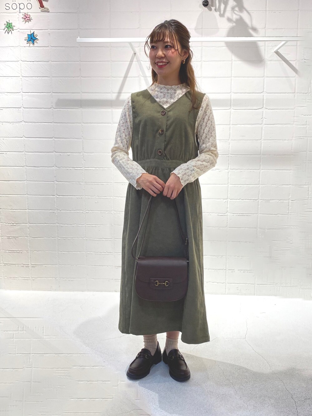 カーキが可愛いジャンスカに 花柄のカットソーでガーリーに🦖♡