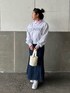 ピンクのストライプシャツがチラ見えで可愛い、春コーデ💗🌸