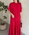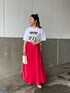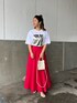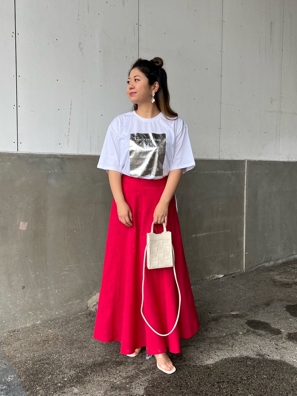 赤のフレアスカートが可愛い❤️ 赤、白、シルバーのカラーを使った夏らしいコーデです🌻