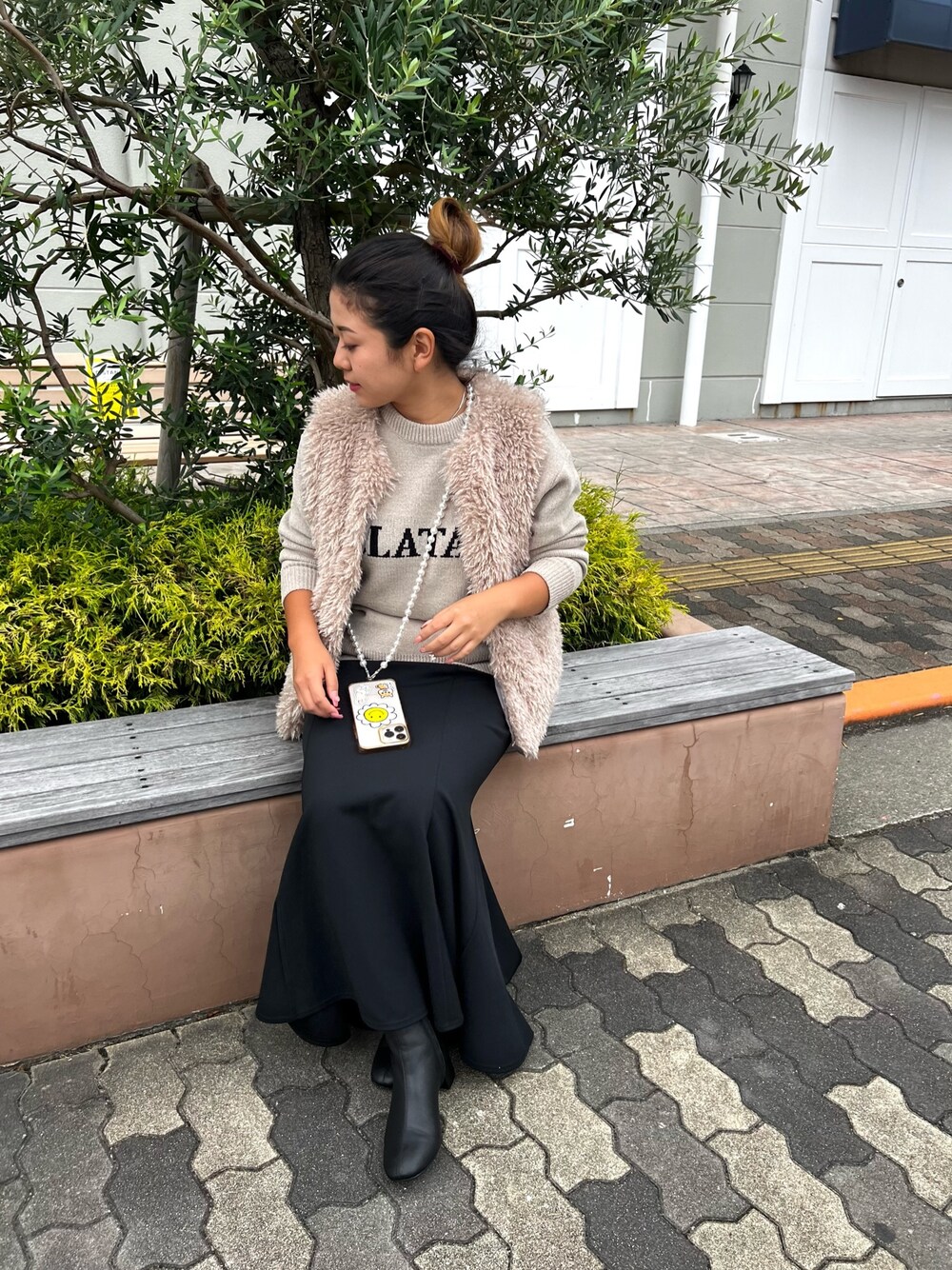 トレンドファーベストとニットを同じトーンの色にしても可愛かったです❤️ 秋服めっちゃ可愛い💕 ファーベスト¥3,960とお買い得です🉐