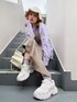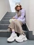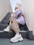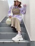 スポーティーMIXな感じ🏃♀️ 大きめシルエットのシャツにビスチェでキュッと。 ダッドスニーカーとバケハ投入👟 シャツの色と合わせた靴下がチラ見せ🧦 チラ見せできるこのスカートの丈が良いんだなぁ🤍