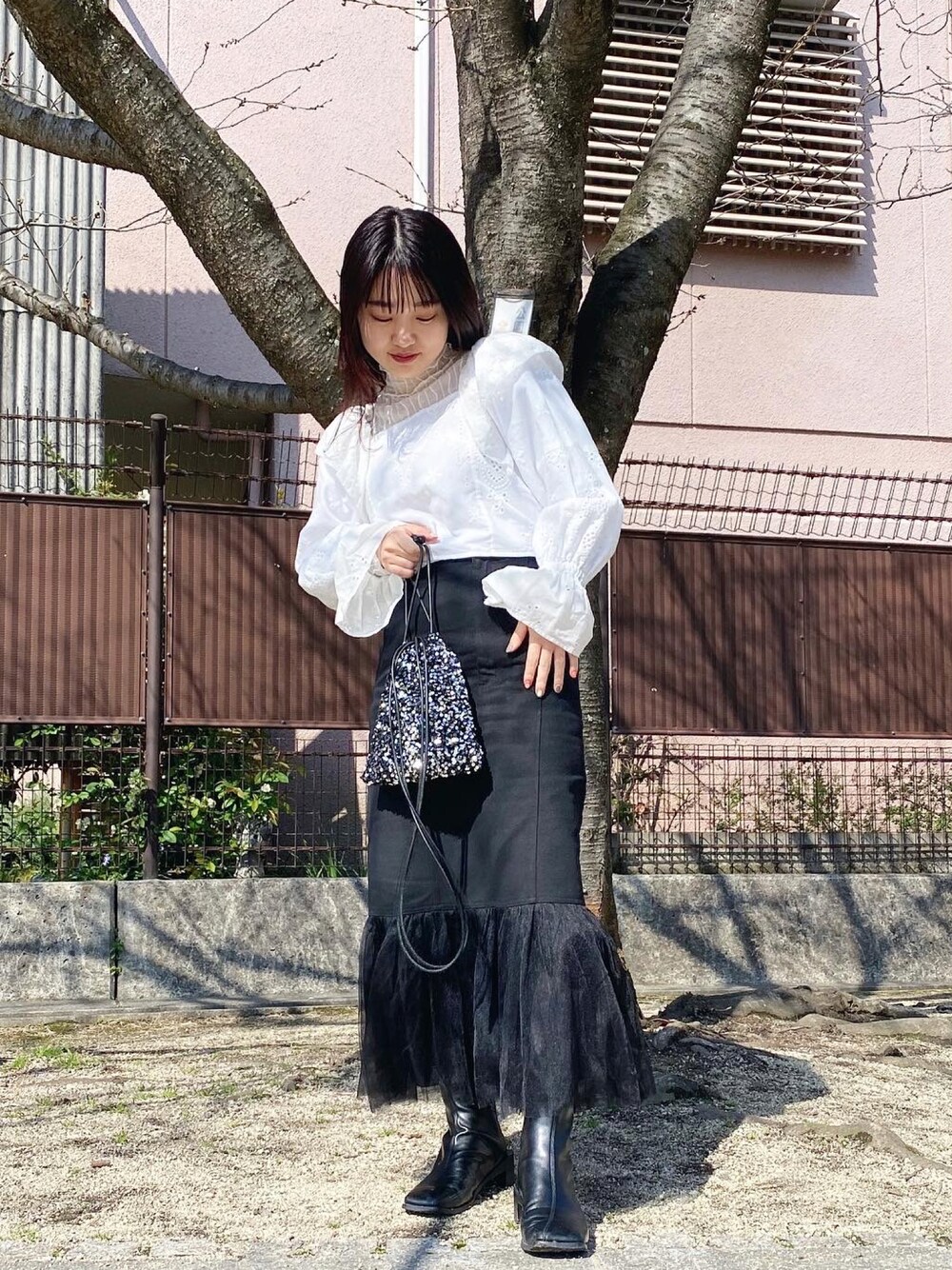 チュールで春のモノトーンコーデも◎
