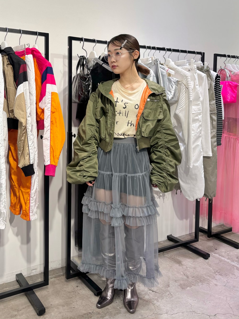 MA-1ってカジュアルになりすぎて苦手やったんやけど、ボリューミーなお袖のデザインとミニマムな丈感のこのMA-1は使い勝手良くてハマりそう🐢