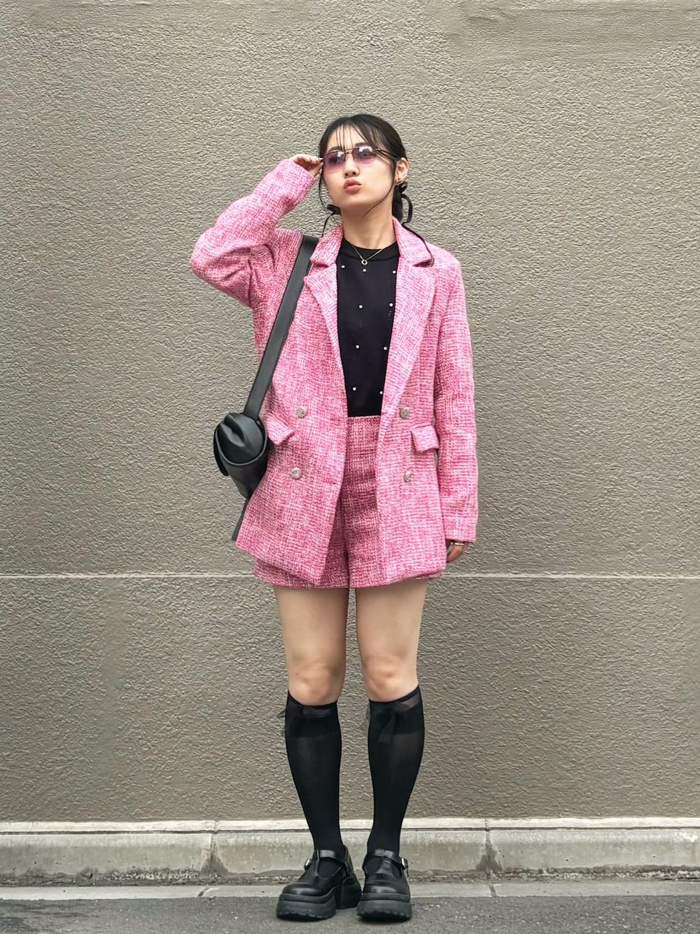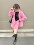 ブラック系のローファー、ピンク系のその他パンツ、ブラック系のトップスを着用したレディースの秋コーディネートの2枚目の写真