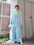 サテンのセットアップなかなかないよね、私はブルーが好き!🩵