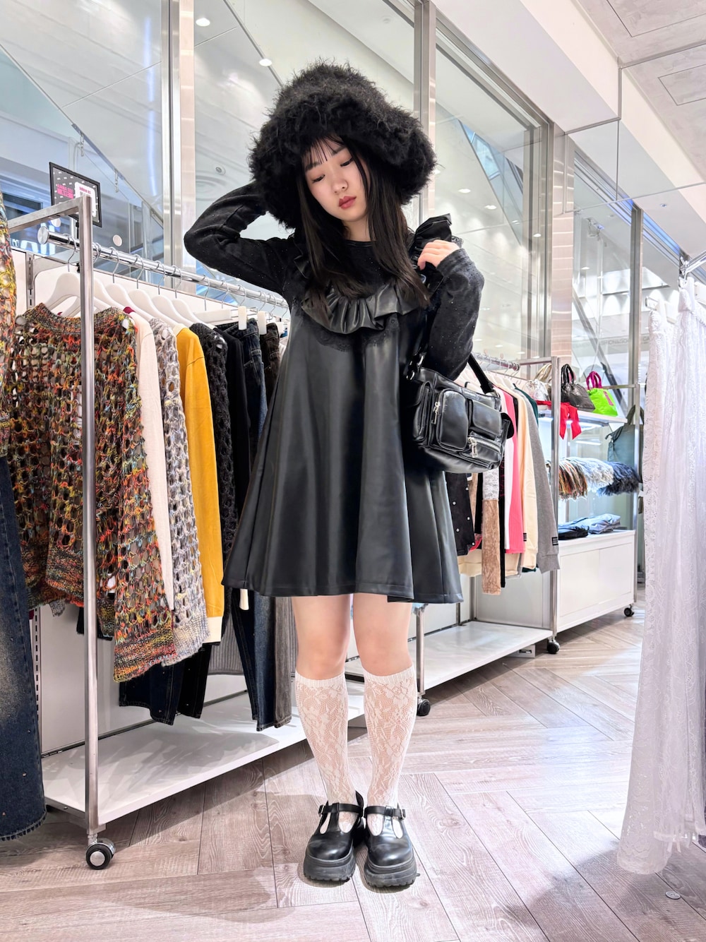 とってもボリューミーなファーハットはきれいめコーデにはもちろん、カジュアルコーデにもアクセントに✨