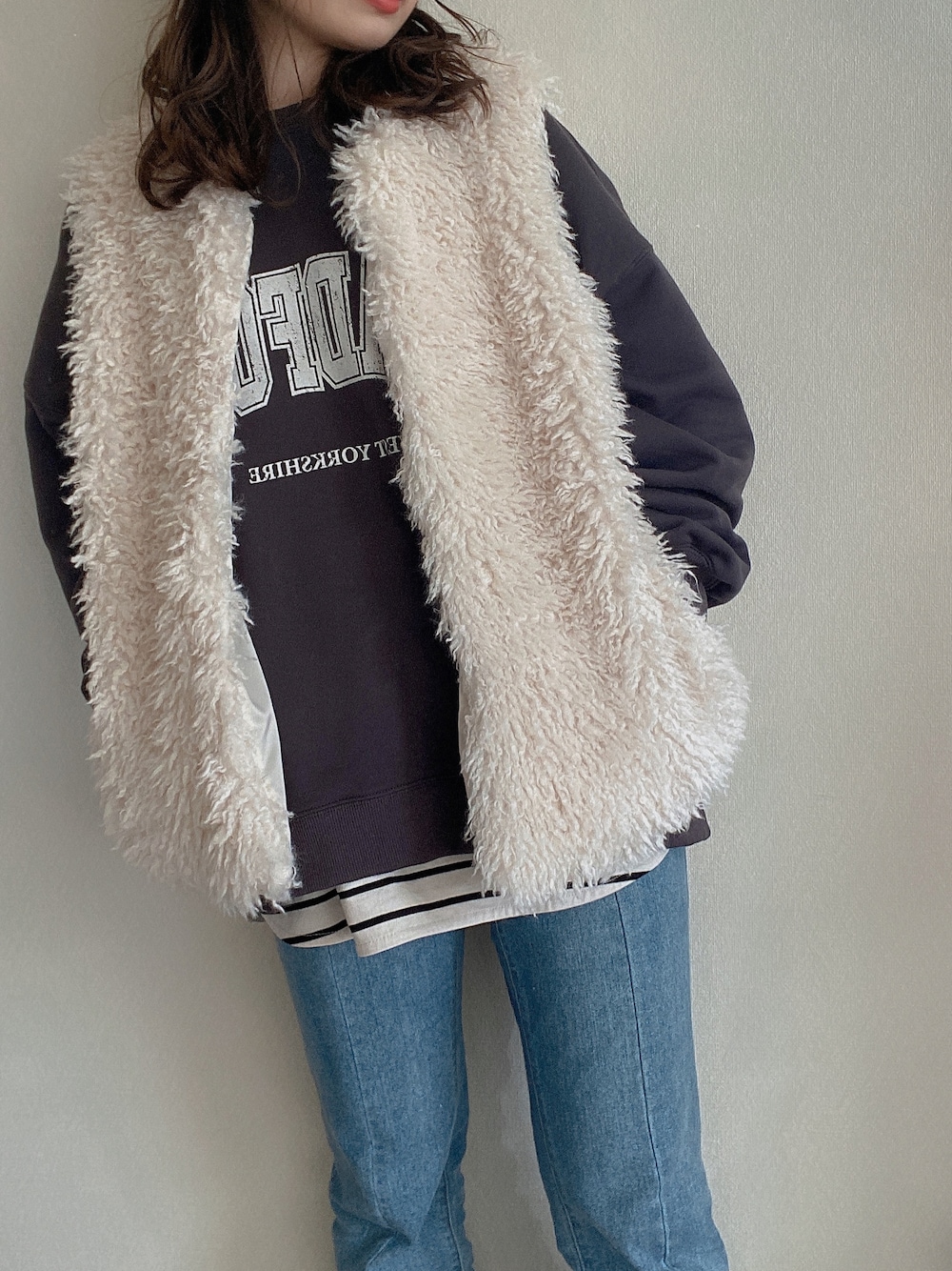 nmのスウェット「カレッジスウェット」を使ったコーディネート