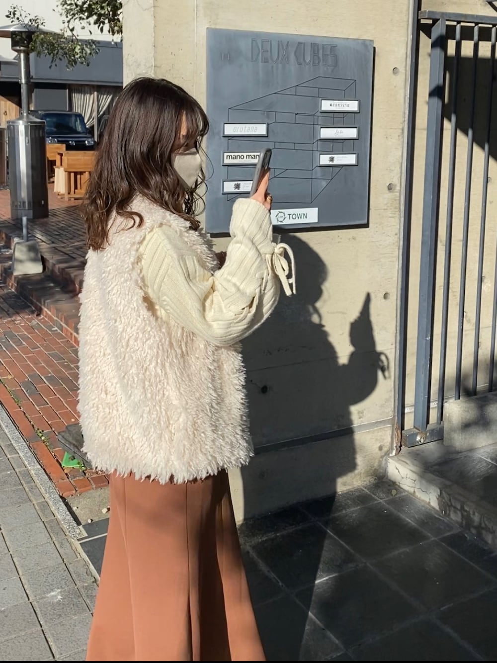 🏷⸒⸒ootd ___________ vest : #mystic knit : #lowrysfarm skirt : #alumu ___________ #fff #淡色女子と繋がりたい #おしゃれさんと繋がりたい #cafe #fashion #元アパレル #淡色コーデ #淡い民 #いいねした人で気になった人フォロー #ファーベスト #off #day