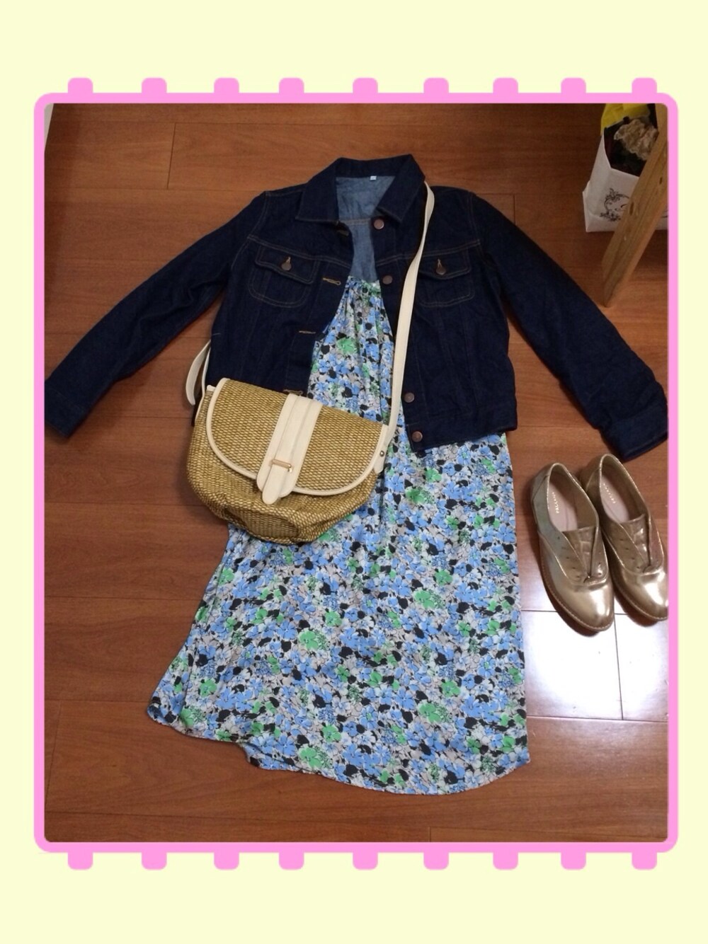 ジャケット*無印良品 ワンピース*ROPE’PICNIC バッグ*UNITED ARROWS UNITED ARROWSで、ショルダーがめずらしい籠バッグにひとめぼれ♡