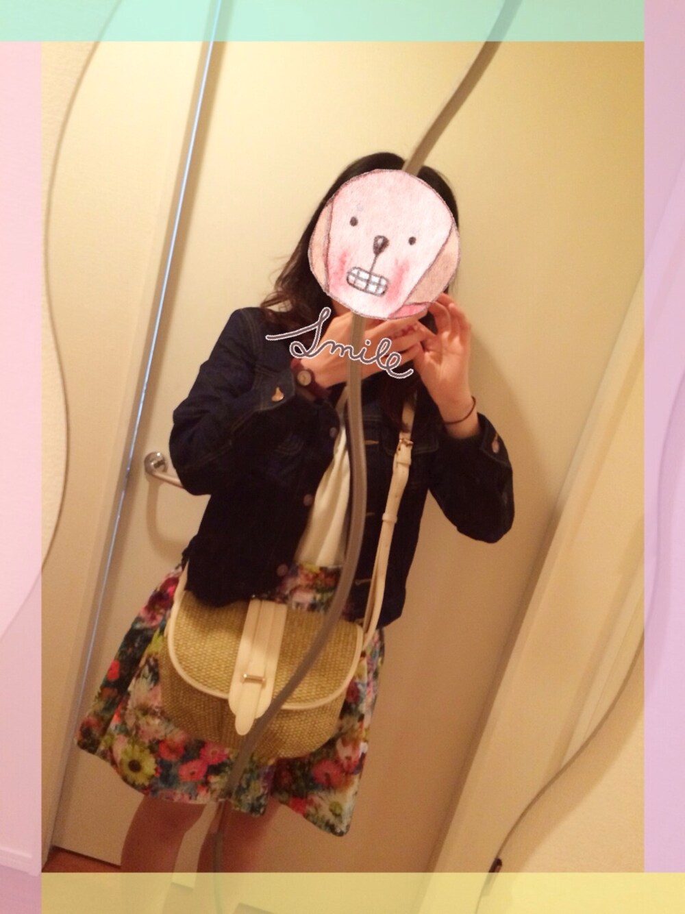 フラワープリントのZARAのスカートは3、4年前のもの…お気に入り☻ スカート*ZARA ジャケット*無印良品 ニット*titivate バッグ*UNITED ARROWS