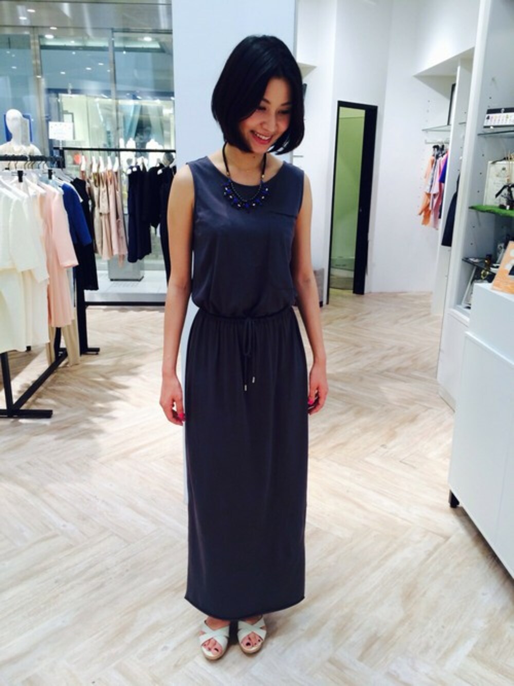シンプルでOFFな日に着たいリラックスワンピに、ボリュームネックレスをプラスしてタウン仕様に! 大人なカジュアルコーディネートです♪