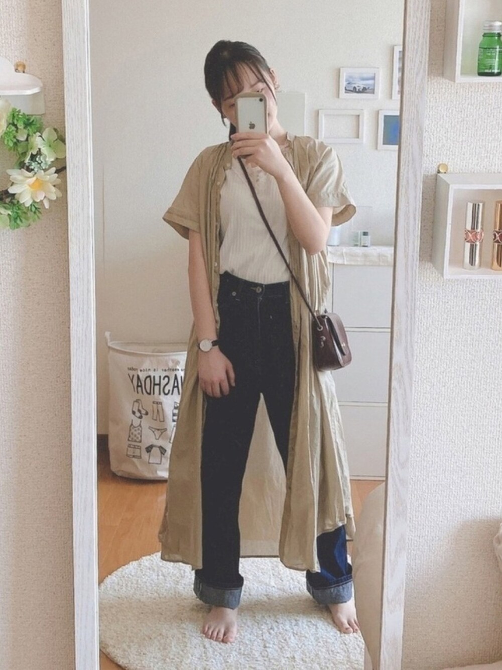 GUのシャツワンピースをアウターに使ったコーデです🌼 たまたまセールで990円で購入しました👏🏻 ワンピースとして着ても可愛かったけどパンツスタイルに羽織るだけで雰囲気が変えられるので便利なアイテムです✨ 夏のアイテムですが、まだまだ残暑が厳しいので秋でも着れそうです!