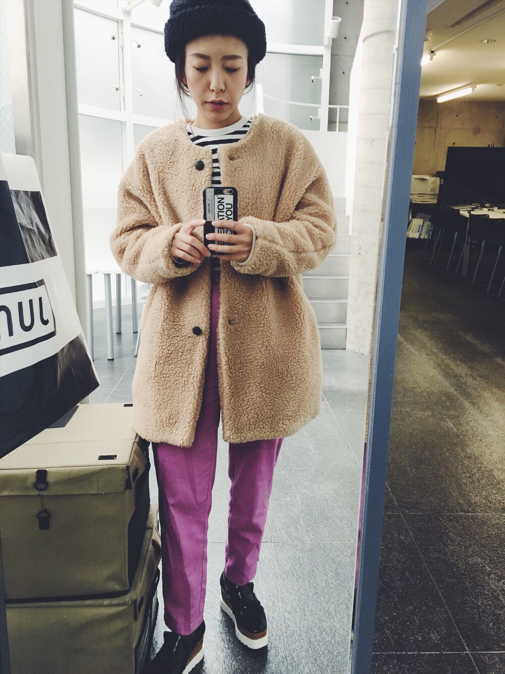 ayanoのその他アウター「via j (ヴィアジェイ) ボアハーフコート」を使ったコーディネート