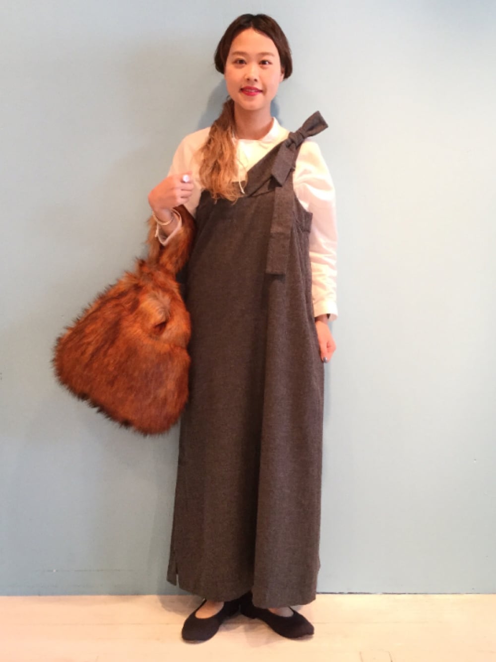 <maturely>のワンストラップワンピース。 一枚で主役になるワンピースは、 ベーシックカラーで合わせ より引きたつようにスタイリングを組みました。 大好きなクラシカルな雰囲気にも仕上がり 女性らしさもアップするアイテムです。 個性的なワンストラップ、 裾のスリットがポイントで 様々なコーディネートが楽しめそうです。
